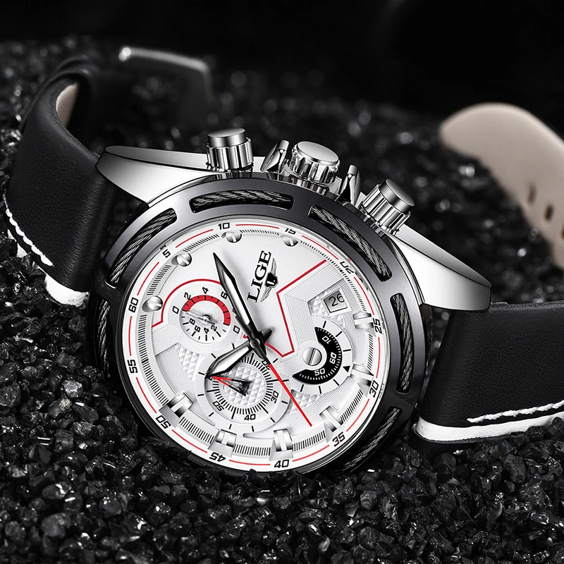 LIGE Top brand 9882 new mens watch luxury quartz watch mens calendar leather military waterproof sp